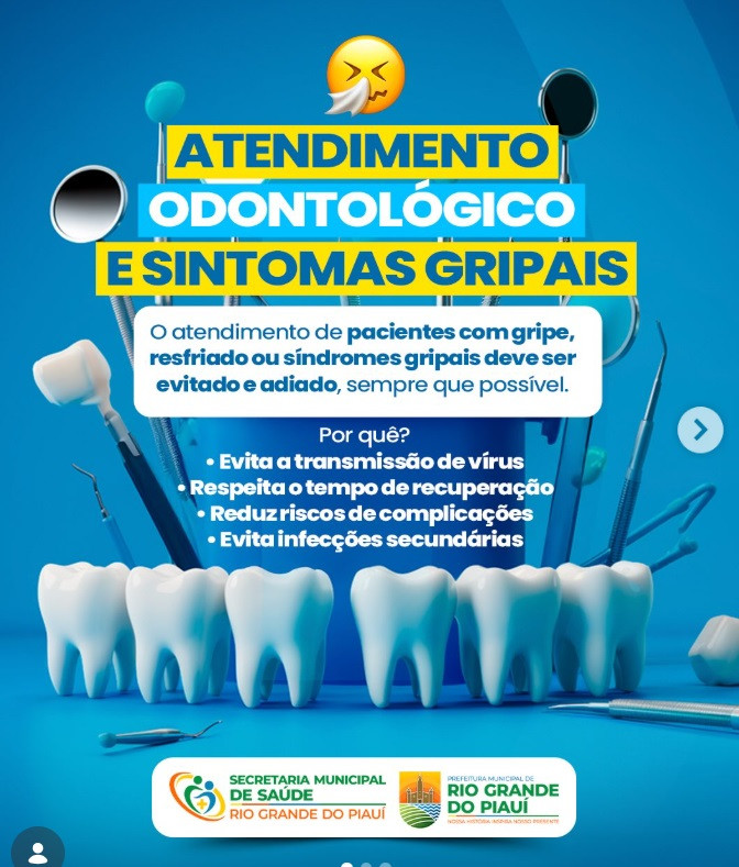 O atendimento odontológico de pacientes com **gripe, resfriado ou síndromes gripais deve ser evitado e adiado**, sempre que possível.